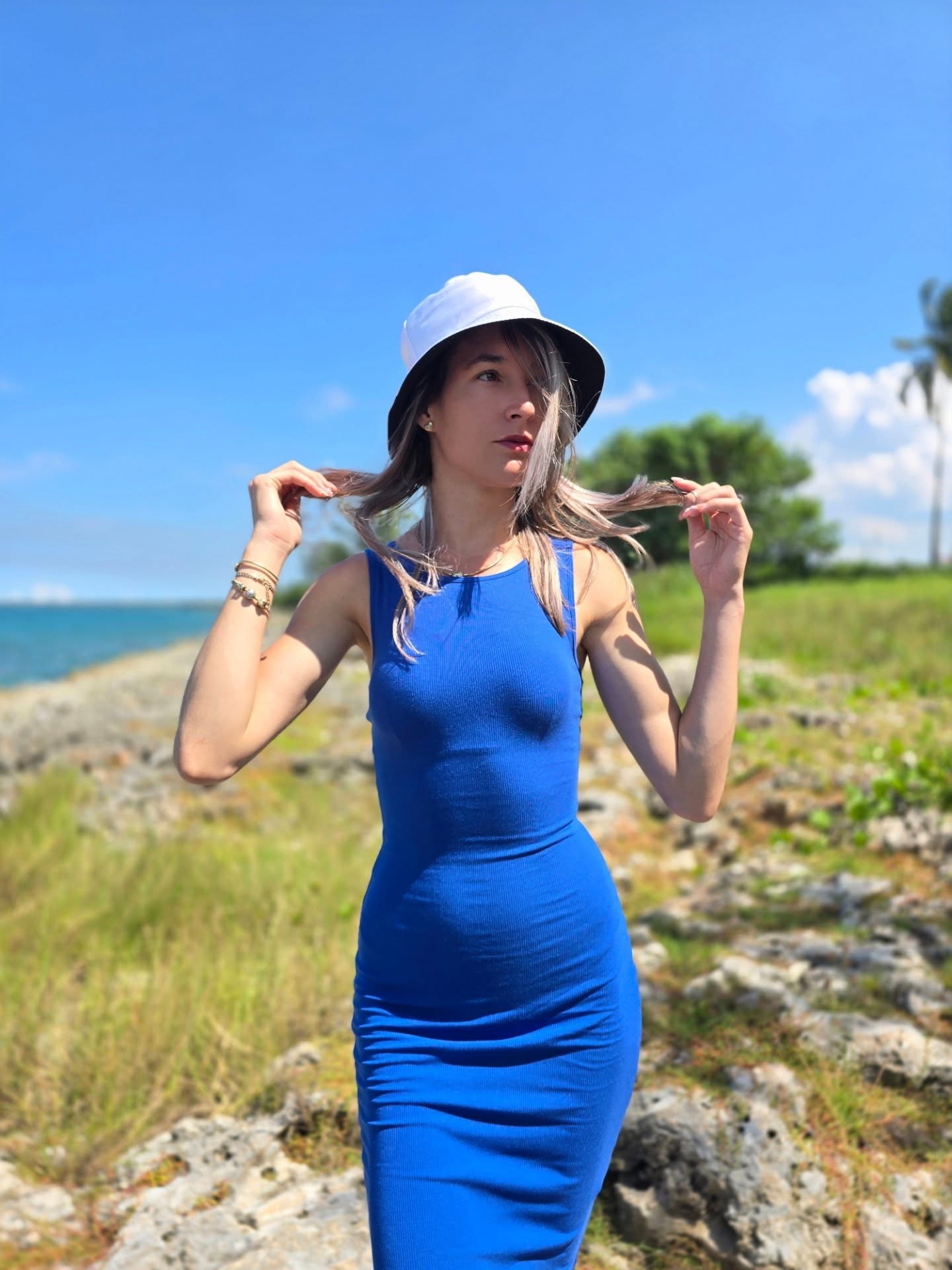 The material feels amazing, soft and lightweight. I wore it to brunch and then to a casual meet-up later, and it stayed comfortable all day. The fit is true to size and hugs curves in a nice way. Customer service answered my question quickly too.