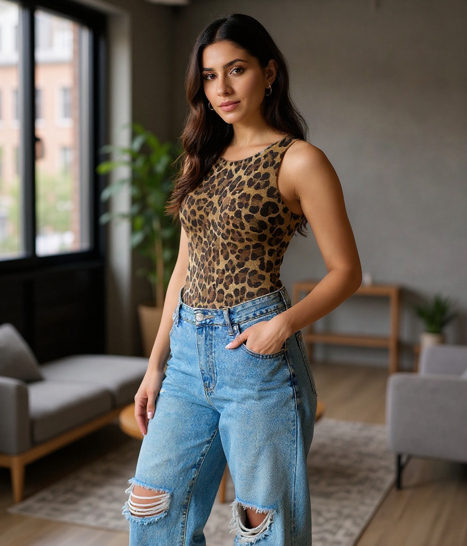 Really like how this looks with a pair of light wash jeans. The leopard print is fun but still easy to style. It fits true to size for me and the material feels smooth against the skin.